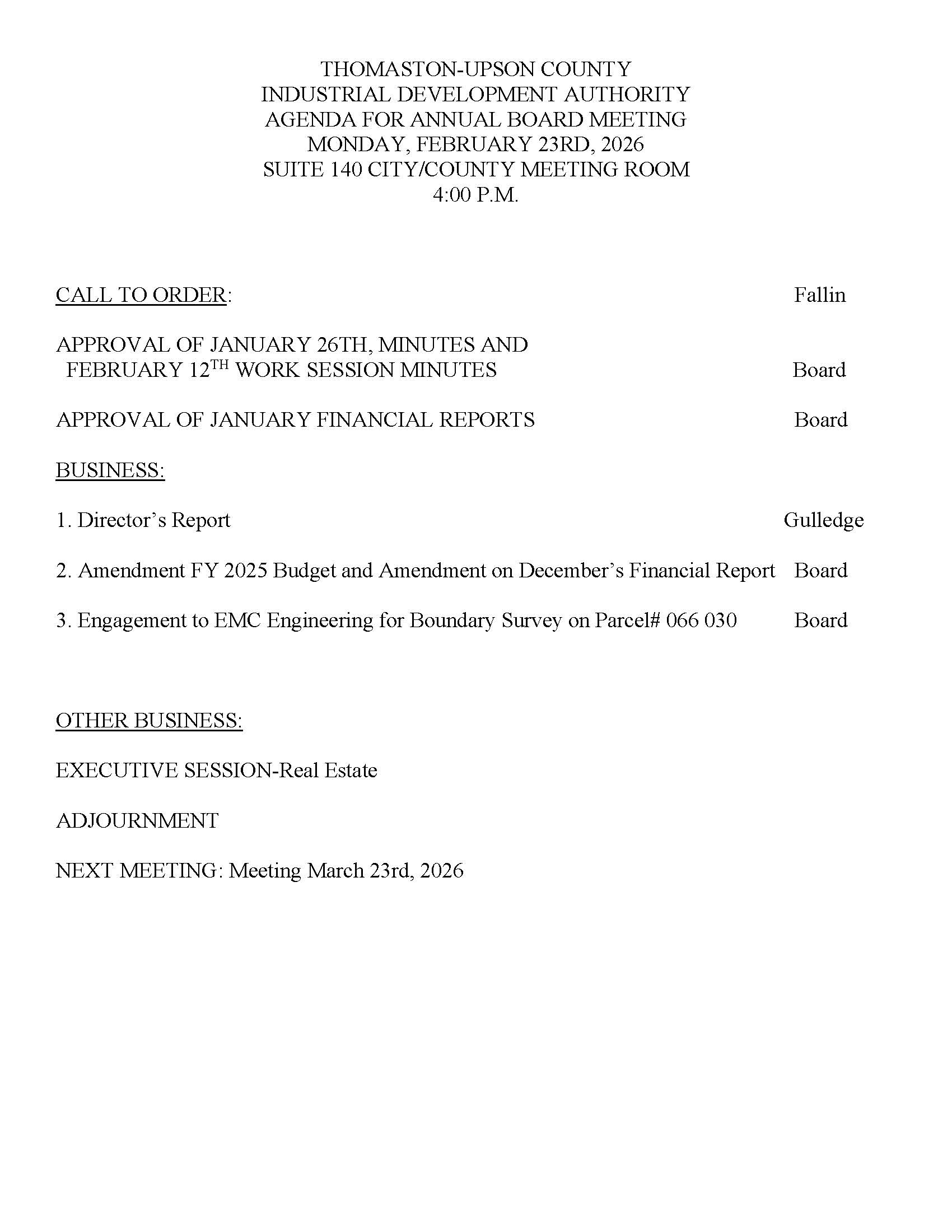 | February 26, 2024 | Agenda (Download) | Minutes (Download) |